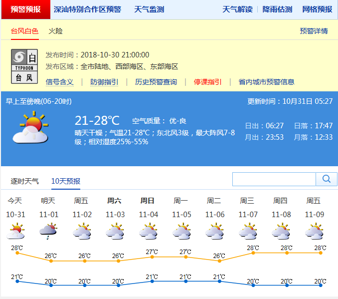 受其影響,31日深圳市沿海和高地陣風(fēng)7-8級,1日加大至8-9級。