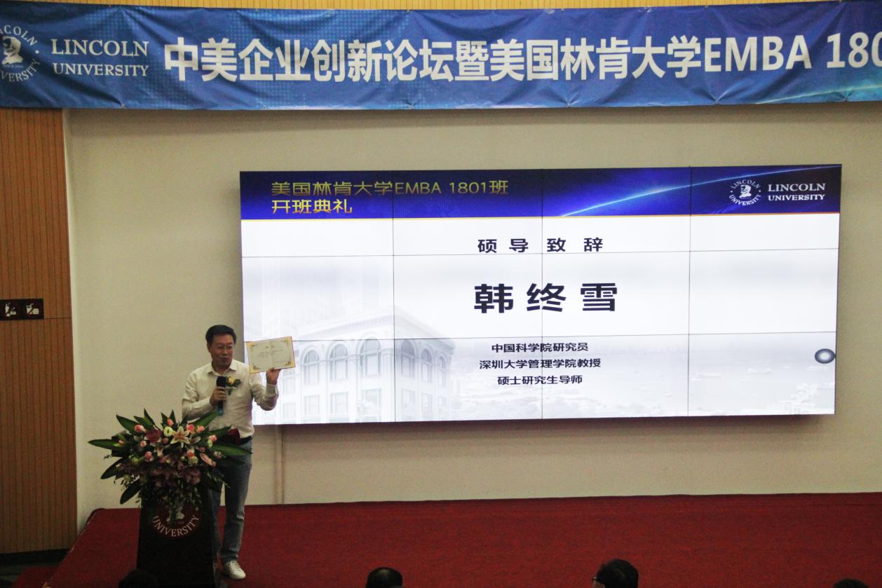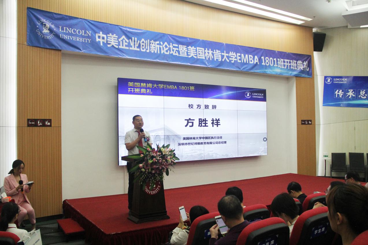 深圳新聞網(wǎng)訊 10月27日上午,由美國(guó)林肯大學(xué)EMBA深圳教學(xué)中心舉辦的《中美企業(yè)創(chuàng)新論壇》暨美國(guó)林肯大學(xué)EMBA1801班開班典禮,在深圳科技園香港科技大學(xué)報(bào)告廳舉行。論壇邀請(qǐng)了美國(guó)林肯大學(xué)校方代表?xiàng)畛缢嚥┦?、方勝祥先生、美?guó)加州州立大學(xué)計(jì)算機(jī)系正教授 陶翼青 、中科院研究員韓終雪教授出席。美國(guó)林肯大學(xué)EMBA1801班的同學(xué)們、來自深圳教育行業(yè)、中國(guó)企業(yè)家代表 以及 媒體記者等160多位嘉賓 參加活動(dòng) 。