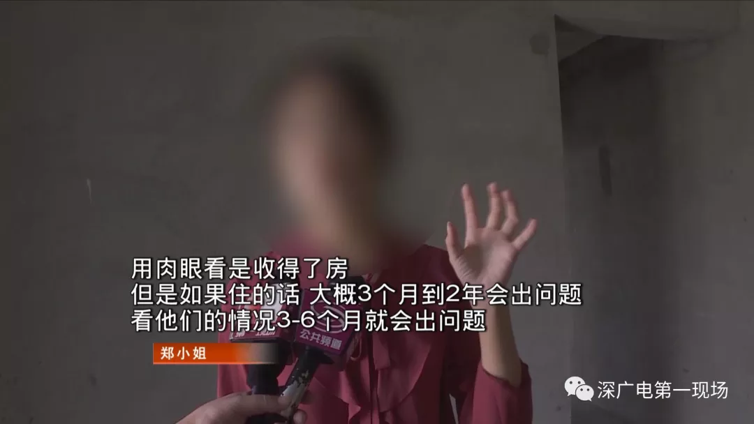 10月25號(hào)下午,鄭小姐在第三方監(jiān)理驗(yàn)房機(jī)構(gòu)的陪同下,前往碧海君庭3棟頂層的這一戶型收房。不用專業(yè)人士鑒定,鄭小姐自己就看出了不對(duì)勁。