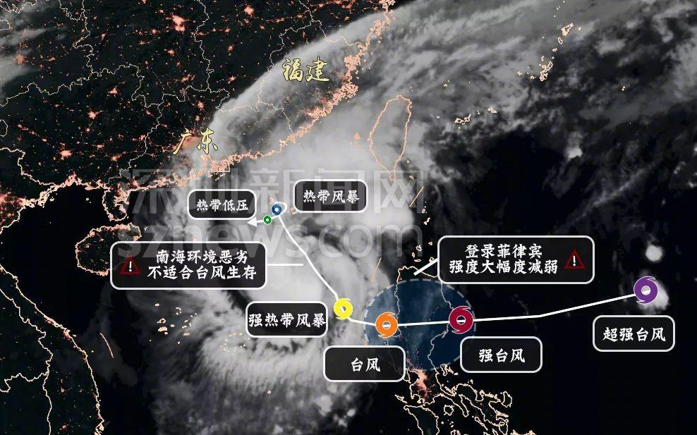 深圳市氣象局發(fā)布的玉兔從超強臺風(fēng)到減弱為熱帶低壓圖