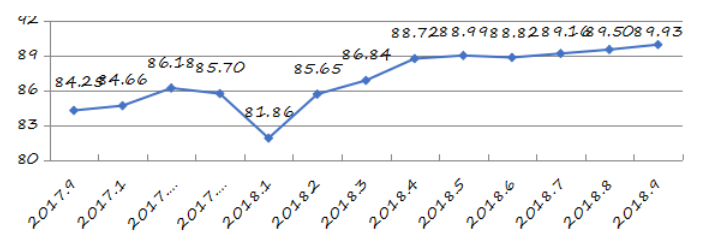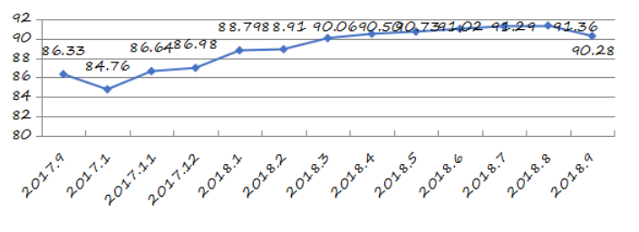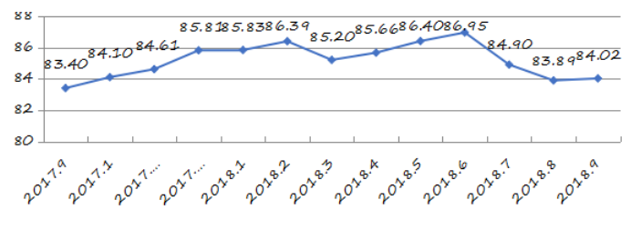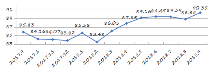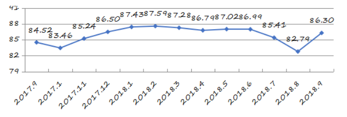 國(guó)家統(tǒng)計(jì)局深圳調(diào)查隊(duì)編制9月份深圳市城市交通文明指數(shù)為87.02分,比上月增加0.05分,比上年同期增加2.06分;深圳市城市交通文明進(jìn)步指數(shù)為-0.05 % (見圖1)。