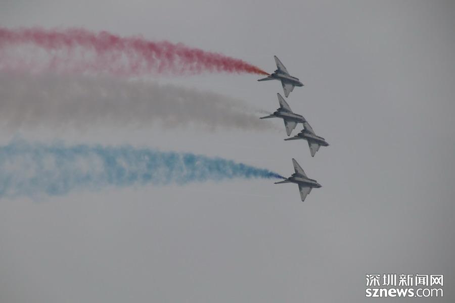 “八一”飛行表演隊(duì)的隊(duì)員則駕駛殲-10,展示了單機(jī)特技表演、六機(jī)編隊(duì)通場(chǎng)……戰(zhàn)機(jī)拉著彩煙,為觀眾帶來精彩的空中芭蕾。