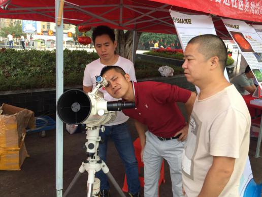 市民朋友在觀察天文望遠鏡
