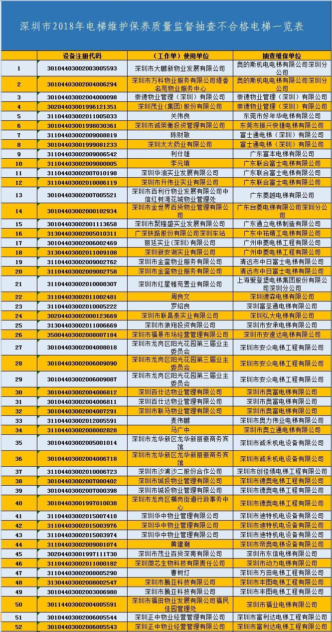 記者從市市場和質(zhì)量監(jiān)管委了解到:該委組織開展了電梯維修保養(yǎng)質(zhì)量監(jiān)督抽查工作,電梯抽檢合格率約為97.8%,6家不合格電梯維保單位被曝光。