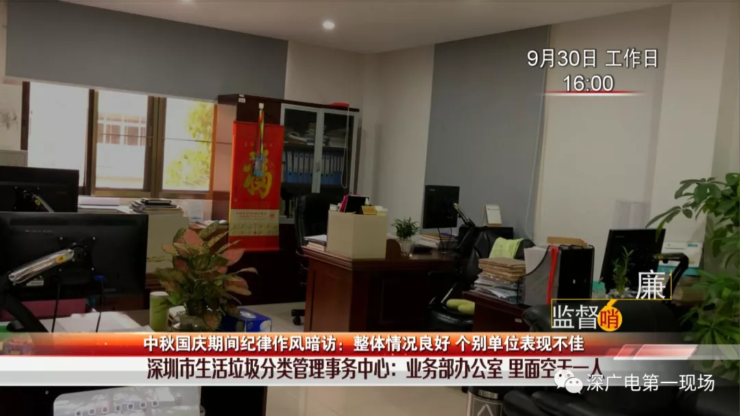 看到該單位工作作風如此渙散,暗訪組成員繼續(xù)對另外一棟高層辦公樓展開暗訪檢查。下午4點03分,暗訪組成員剛進入二樓——深圳市生活垃圾處理監(jiān)管中心辦公區(qū)域,就聽到有兩名男性工作人員招呼打掃衛(wèi)生的清潔人員幫忙整理辦公室,而這兩人背著包,徑直離開辦公大樓。