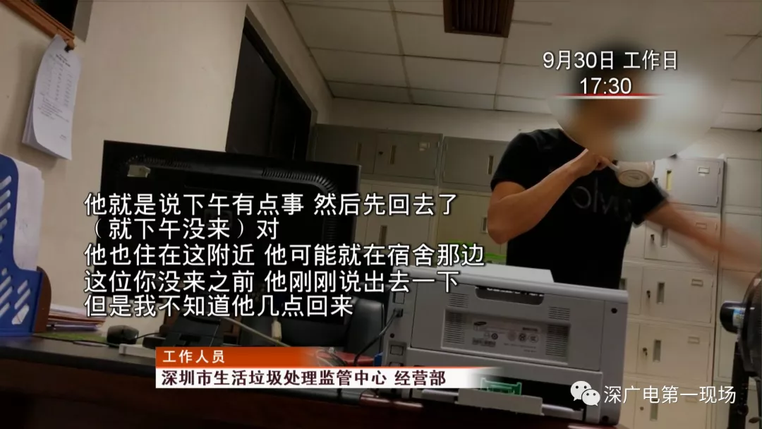 暗訪組了解到,這間辦公室屬于深圳市生活垃圾處理監(jiān)管中心經(jīng)營部,而這間辦公室內(nèi)的兩名工作人員直到規(guī)定的下班時間5點半,也沒有回到辦公室。聯(lián)合暗訪組還發(fā)現(xiàn),216辦公室的隔壁214辦公室也同為經(jīng)營部,里面有四個辦公卡座,但只剩下一名男性工作人員。