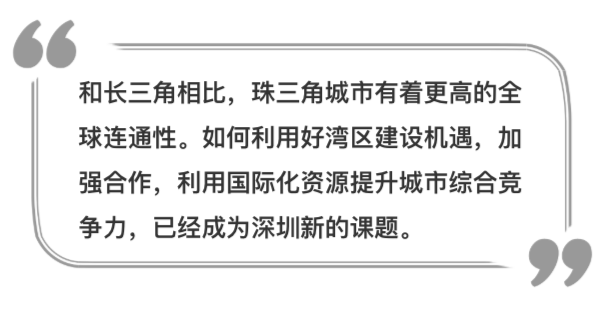 一方面,深圳要開展更大范圍、更高水平、更深層次的全球合作,提升在全球網絡中的地位和能級,增強對經濟資源要素的配置能力,加深與全球市場的融合程度。另一方面,深圳也應從本土優(yōu)勢和特色出發(fā),進一步融入國家開放格局,構筑良性的城市-腹地關系,培育內生的經濟、產業(yè)、設施、資源等支撐體系,通過區(qū)域協同發(fā)展,增強全球競爭力。