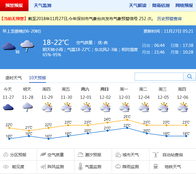 深圳新聞網(wǎng)11月27日訊(記者 陳婕)一場秋雨一場寒,市氣象臺預測,未來幾日秋雨綿綿,氣溫為17-22℃,下雨時能見度較低,出行注意安全。