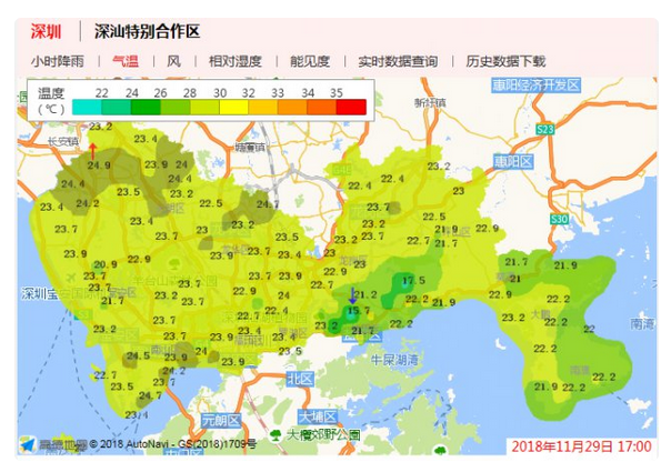 近期深圳天氣不穩(wěn)定,冷暖天氣交替切換頻道。預(yù)計(jì)未來一周天氣平穩(wěn),其中30日到12月2日多云,可見陽光,早晚清涼,部分時(shí)間有輕霧,30日氣溫18 ℃ ~25 ℃;另外,12月3日 ~12月6日濕度上升,間中有零星小雨,氣溫小幅波動(dòng)。
