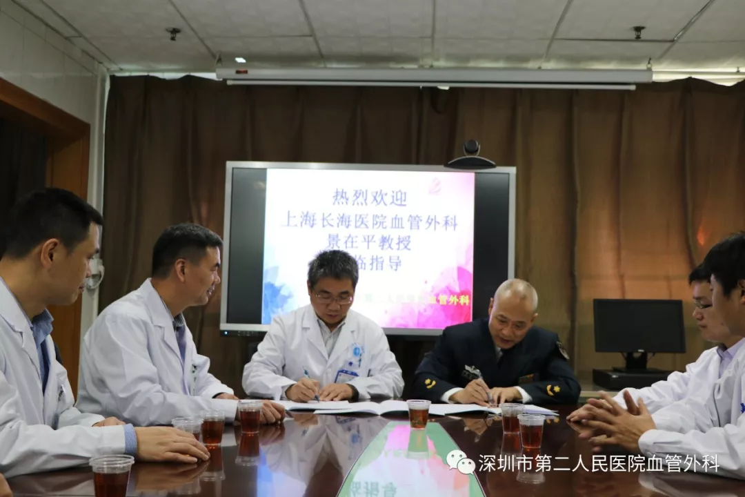 2018年11月30日,中國人民解放軍海軍軍醫(yī)大學附屬長海醫(yī)院血管外科、心臟瓣膜疾病微創(chuàng)診治中心主任,上海市血管系統(tǒng)疾病臨床醫(yī)學中心主任,全軍血管外科研究所所長,中國醫(yī)師協(xié)會腔內血管學分會(二級)主任委員,國際知名血管外科專家景在平教授,來到深圳市第二人民醫(yī)院(深圳大學第一附屬醫(yī)院)(以下簡稱“我院”)進行座談、臨床查房、會診以及向全市住院醫(yī)師規(guī)培學員、教師與基地管理人員進行專題學術講座。