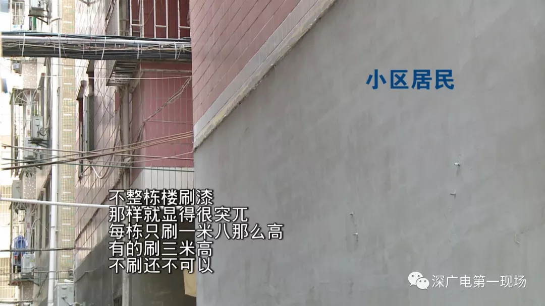 一些居民們投訴說,外墻粉刷只刷三米高,覺得很難看,如果要美化外墻,就應(yīng)該對(duì)整棟樓從上到下全部美化。
