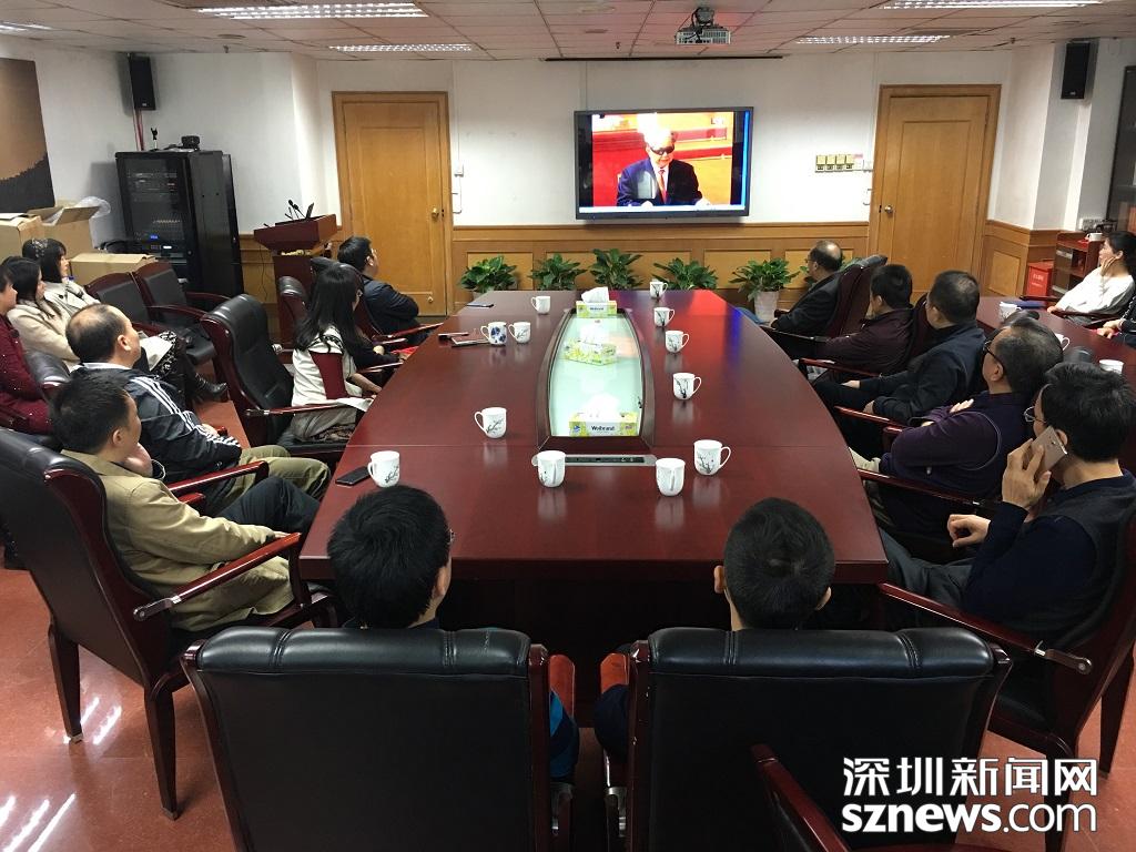 羅湖區(qū)投資推廣局集中收聽(tīng)收看慶祝改革開放四十周年大會(huì)。