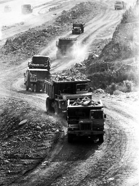 1994年修建濱海大道時泥頭車運(yùn)泥填海。鄭東升攝
