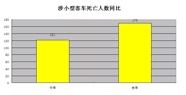 今年以來(lái),全市共發(fā)生涉小型客車事故死亡121人,同比減少49人下降28.82%,占全市事故死亡下降總?cè)藬?shù)的84.48%。由于小型客車的構(gòu)成主要為私家車,顯示我市私家車交通安全水平顯著提高。
