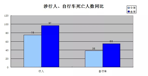 今年以來(lái),全市共發(fā)生涉行人事故死亡75人,同比減少22人,下降22.68%,占事故死亡總?cè)藬?shù)的27.08%。全市共發(fā)生涉自行車事故死亡38人,同比減少17人、下降30.91%,占事故死亡總?cè)藬?shù)的13.72%。我市慢行交通方式的道路安全水平進(jìn)一步提升。
