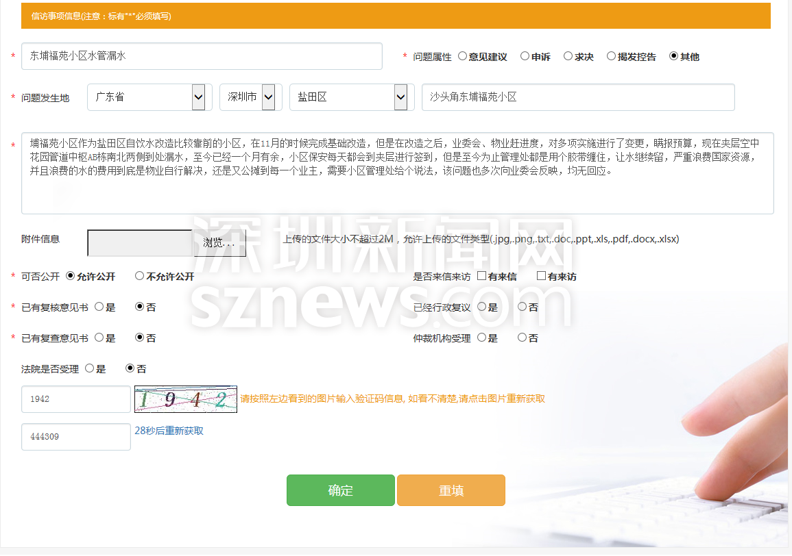 為核實(shí)網(wǎng)友反映情況,記者隨即登錄該網(wǎng)站,點(diǎn)擊“我要寫信”后,便跳轉(zhuǎn)到寫信填表頁(yè)面,填寫完基本信息,點(diǎn)擊確認(rèn),顯示“投信成功”。經(jīng)測(cè)試,記者并未看到該網(wǎng)友反映的“添加失敗”情況。但從網(wǎng)帖上看,該網(wǎng)友仍對(duì)自己投訴無(wú)門的遭遇感到糟心,他堅(jiān)持表示自己手上有水管漏水以來(lái)近一個(gè)月的照片和視頻,自己反映的情況也絕對(duì)屬實(shí),希望有關(guān)部門能給一個(gè)答復(fù)。