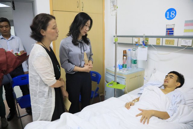 ▲深圳晚報、深圳市紅十字會、深圳市關(guān)愛行動公益基金會等單位領(lǐng)導(dǎo)和工作人員看望病中的向金華。