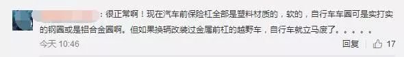 還有有不少網(wǎng)友指出,"很正常啊!現(xiàn)在汽車前保險杠全部是塑料材質(zhì)的,軟的,自行車車圈可是實打?qū)嵉匿撊蚴卿X合金圈啊。但如果換輛改裝過金屬前杠的越野車,自行車就立馬廢了""如果把這些拿來冷嘲熱諷,鼓勵所有汽車制造商弄成實打?qū)嵉挠茶F,那么發(fā)生碰撞的時候就笑不出了""對一個局部點進行沖擊。力度是非常大的,換其他大部分車都一樣"。