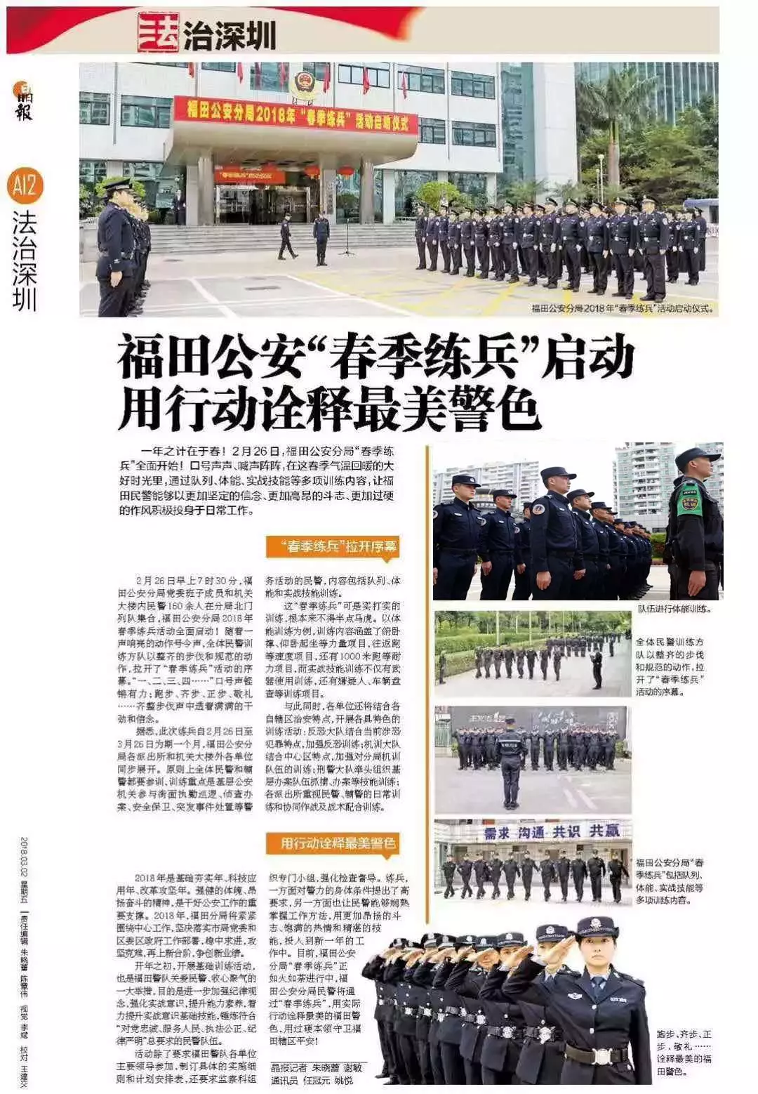 ★★強健的體魄、昂揚奮斗的精神,是干好公安工作的重要支撐。2月26日早上,福田分局2018年春季練兵全面啟動,全體民警和輔警參加,重點訓練隊列、體能和實戰(zhàn)技能。