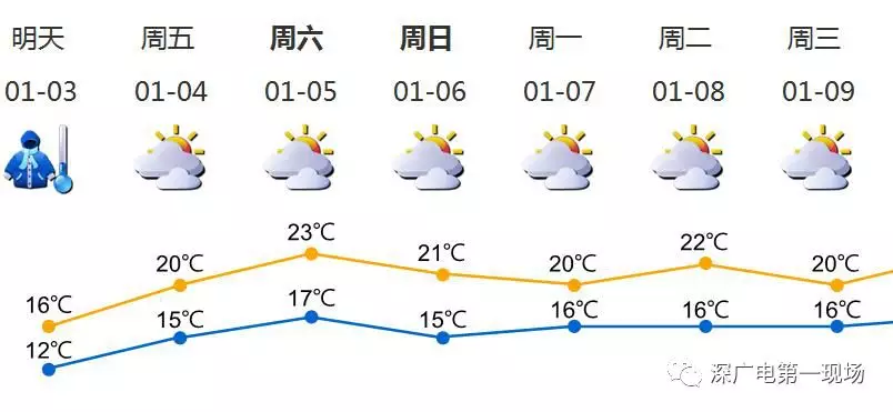 3日陰天間多云,有分散小雨,氣溫12-16℃,北部及山地再低1-2℃;4-5日陰天間多云,偶有零星小雨,早晚有輕霧,氣溫明顯回升;6-8日多云為主,氣溫小幅波動。