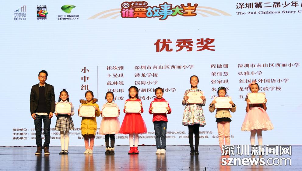 深圳新聞網(wǎng)2019年1月4日訊(記者 黃芷苑 曹園芳 陳彬)2019年1月3日晚,歷時兩月有余的中國銀行“誰是故事大王·第二季”深圳市總決賽暨頒獎典禮圓滿落幕。經(jīng)過緊張激烈的角逐,小中組西灣小學(xué)王昕悅、小高組西麗小學(xué)彭妙琪獲得一等獎,被評為“誰是故事大王·第二季”的“故事大王”。此外,小中組西灣小學(xué)王昕悅、小高組西麗小學(xué)劉暢同時獲得本次大賽的最佳創(chuàng)意獎。