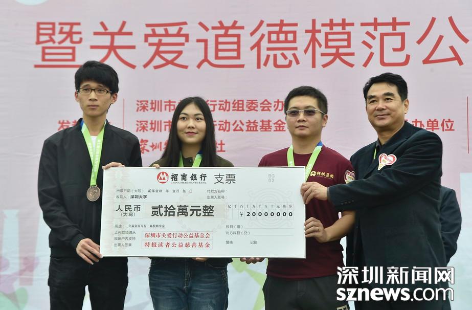 值得一提的是,在活動現(xiàn)場還舉行了“公益金百萬行”助學金捐贈儀式,為深圳大學、深圳職業(yè)技術(shù)學院、深圳信息學院三所高校各捐贈了20萬元,用于資助這三所學校的困難學子。迄今深圳特區(qū)報讀者公益慈善基金已資助1613名貧困大學生,累計資助金額達409萬元。