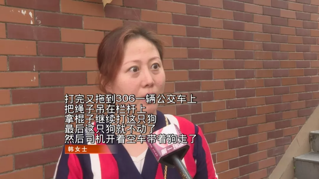 不過,當(dāng)韓女士向工作人員提出要查看狗證時,工作人員改口說這是一條流浪狗,咬了人才打它,并用繩子拴住狗繼續(xù)打,最后把它拖上了一輛公交車。