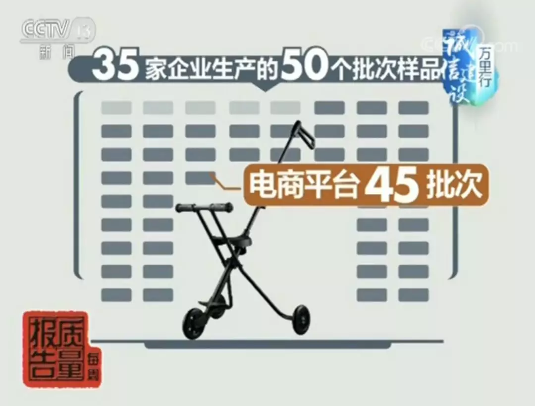 這次風(fēng)險(xiǎn)監(jiān)測(cè)共采集了35家企業(yè)生產(chǎn)的50個(gè)批次樣品,其中實(shí)體店5批次,電商平臺(tái)45批次。50批次樣品中一半為熱銷程度最高的“三輪遛娃神器”,采樣適用年齡重點(diǎn)覆蓋了3歲以下的兒童。