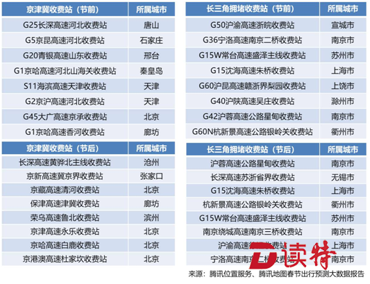 眾所周知,收費(fèi)站是節(jié)假日最易發(fā)生堵車的地點(diǎn)。根據(jù)《報(bào)告》,春節(jié)期間在京津冀地區(qū),擁堵收費(fèi)站絕大部分為省界收費(fèi)站,出現(xiàn)在天津-河北、河北-山東、河北-山西、河北-遼寧、北京-河北邊界區(qū)域。從時(shí)間來(lái)看,節(jié)前預(yù)計(jì)上午10-12點(diǎn)將出現(xiàn)較大擁堵距離,節(jié)后則為16-18點(diǎn)。