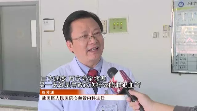 鹽田區(qū)人民醫(yī)院心血管內(nèi)科主任程芳洲告訴記者,通過(guò)王先生發(fā)病的情況以及心電圖的改變,醫(yī)生們判定他是急性心肌梗死,在做造影后,圖像更證實(shí)了是非常嚴(yán)重的一種三支病變,其中兩支完全堵塞,另一支就是導(dǎo)致這次猝死的罪犯血管。
