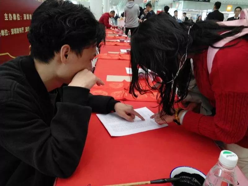 現(xiàn)場寫春聯(lián)的活動時很心動,
