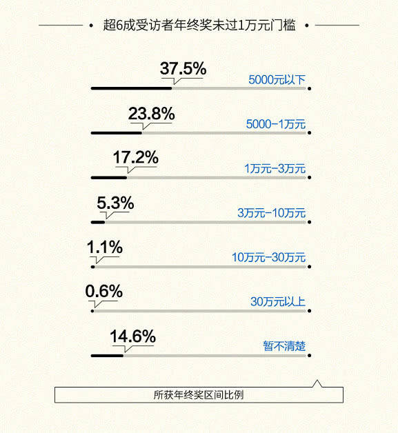 超60%的人年終獎(jiǎng)未過萬(wàn)……