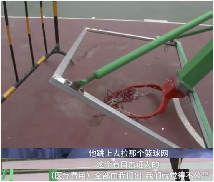 何先生認(rèn)為造成這起事故的主要原因是施工方的疏忽,未將籃球架有效固定,因?yàn)榈顾倪@個(gè)籃球架底座并沒有打鋼釘,填充物也僅有兩塊水泥磚,并不牢固。對此,球場施工方表示,工程驗(yàn)收時(shí)"百分百 OK",愿意出于人道主義關(guān)懷給予傷者適當(dāng)補(bǔ)償,但拒絕支付全部醫(yī)療費(fèi),因?yàn)椋⑺先ダ莻€(gè)籃球網(wǎng),有目擊者的"。