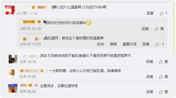 還有一些網(wǎng)友借機(jī)表達(dá)了自己對某類人的"墻裂"不滿?。]事兒拉什么球框啊,以為在打 NBA?。ⅲ⒒钤摚蚯蚓蜔┎荒芸圻€裝 X的"......