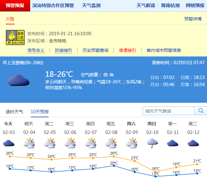 春節(jié)假期(2月4日-10日)廣東省天氣總體平穩(wěn),氣溫偏高,無(wú)大范圍低溫冰凍和強(qiáng)降水影響。2月4日-9日(除夕至初五)全省大部早晚有輕霧,西部部分市縣有小雨。