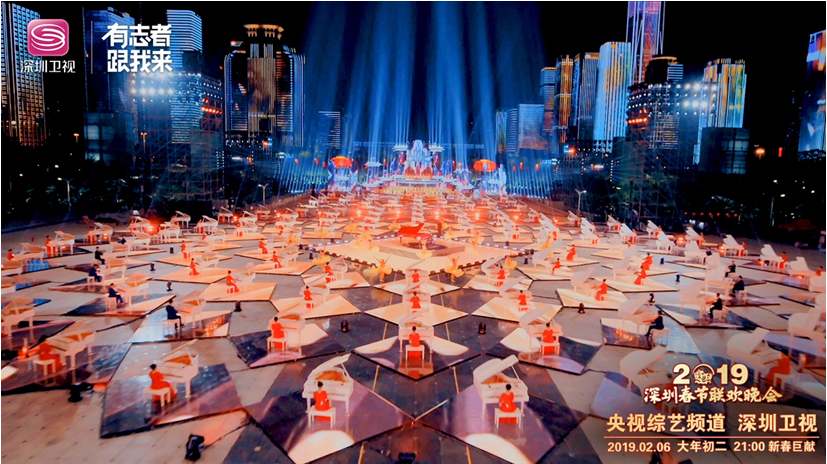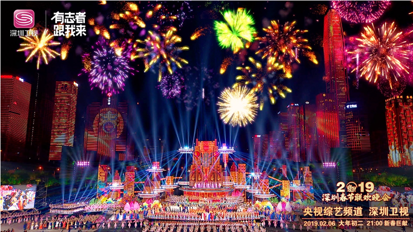 除夕之夜“深圳七分鐘”驚艷世人。晚會以天地為幕、城市為景,把43棟樓宇燈光秀與主舞臺的視頻效果完美融合,從而呈現(xiàn)出“春晚小舞臺,城市大舞臺”的震撼效果,將深圳這座城市的都市化、國際化氣質(zhì)展現(xiàn)得淋漓盡致。