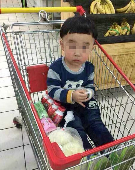 消息配發(fā)的圖片顯示,一名年幼的兒童坐在超市的購(gòu)物車?yán)?,一臉天真爛漫的模樣。圖片中的兒童指稱是被拐的女孩。