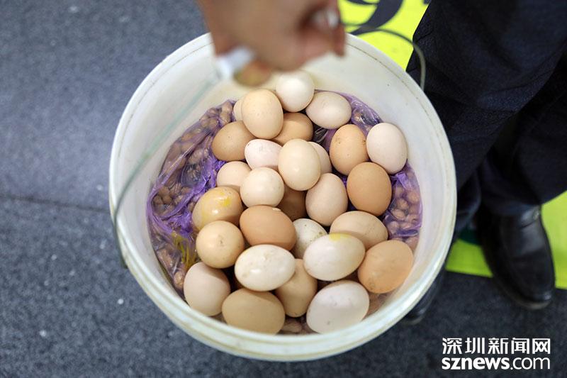老家益陽(yáng)的徐爺爺此次返深,從家里帶了雞蛋還有家鄉(xiāng)的花生,滿滿裝了一大桶