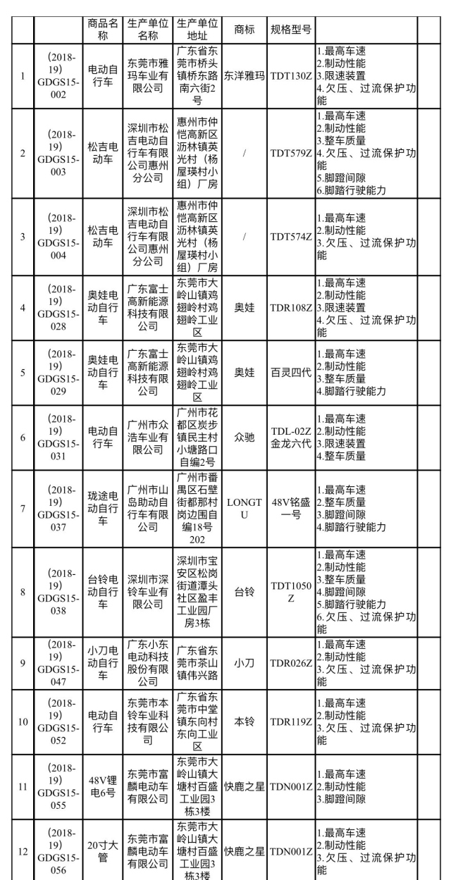 值得注意的是,此次抽檢電動自行車的主要不合格項目有:最高車速、制動性能、限速裝置、欠壓、過流保護功能、整車質(zhì)量(重量)、腳蹬間隙、腳踏行駛能力等,與消費者的使用安全息息相關(guān)。
