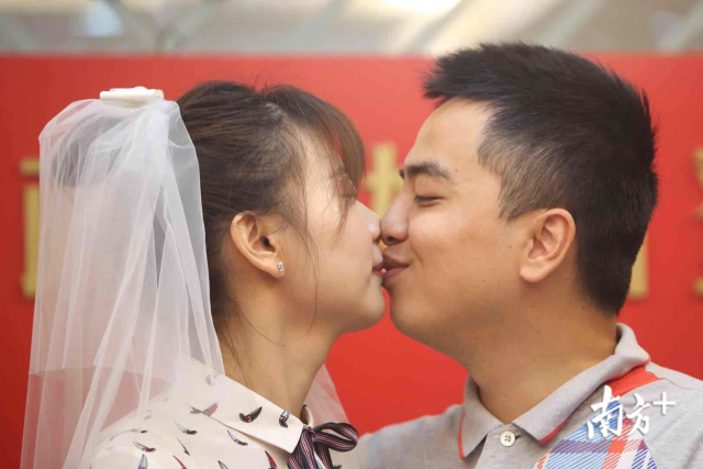 我們結(jié)婚啦!2月14日情人節(jié),一大早,深圳市羅湖區(qū)民政局婚姻登記處迎來許多對新人前來登記結(jié)婚。頒發(fā)證件、許下諾言、親密相吻……一對接一對的新人完成莊重的儀式,留下甜蜜蜜的合影,浪漫的氣息彌漫整個空間。南方日報(bào)記者朱洪波攝影報(bào)道