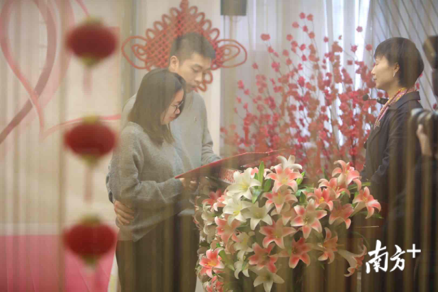 我們結(jié)婚啦!2月14日情人節(jié),一大早,深圳市羅湖區(qū)民政局婚姻登記處迎來(lái)許多對(duì)新人前來(lái)登記結(jié)婚。頒發(fā)證件、許下諾言、親密相吻……一對(duì)接一對(duì)的新人完成莊重的儀式,留下甜蜜蜜的合影,浪漫的氣息彌漫整個(gè)空間。南方日?qǐng)?bào)記者朱洪波攝影報(bào)道
