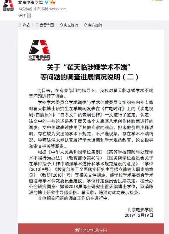 繼翟天臨退出北大博士后站之后,北電也于19號撤銷其博士學位了