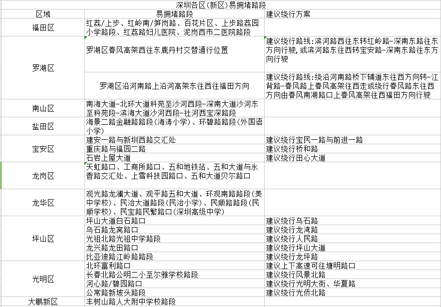 在這之前,先來看看交警盤點(diǎn)的深圳各區(qū)(新區(qū))易擁堵路段