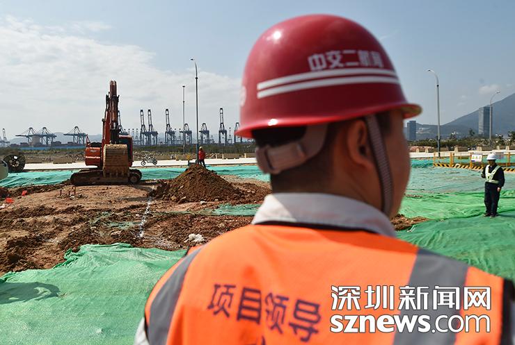 位于鹽田區(qū)的鹽港東立交工程現(xiàn)場施工團隊人員在現(xiàn)場進行督導
