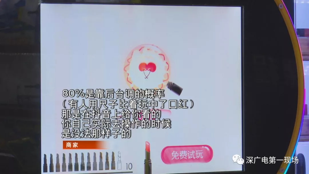 記者注意到,在網(wǎng)上,也有一些所謂的口紅機(jī)通三關(guān)的攻略,不過(guò)有商家表示,說(shuō)到底,中獎(jiǎng)幾率還是靠設(shè)定,所謂攻略基本不靠譜。