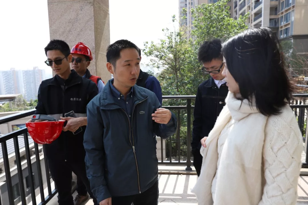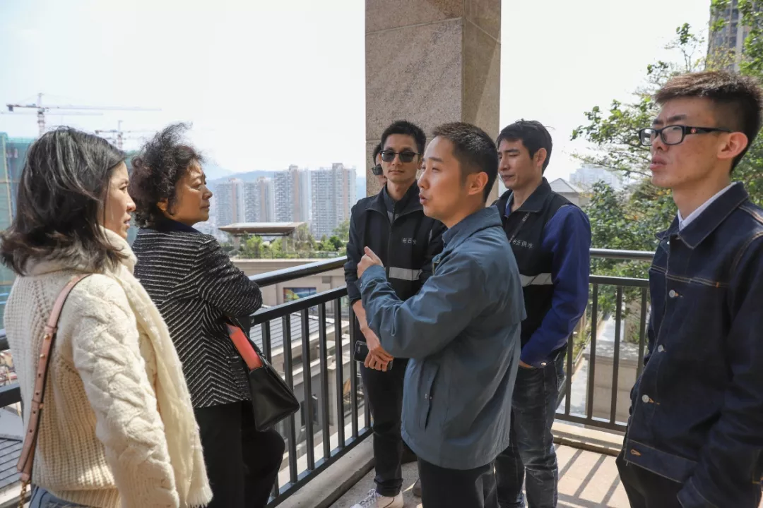 ▲水務局工作人員與紫瑞花園業(yè)委會代表進行溝通