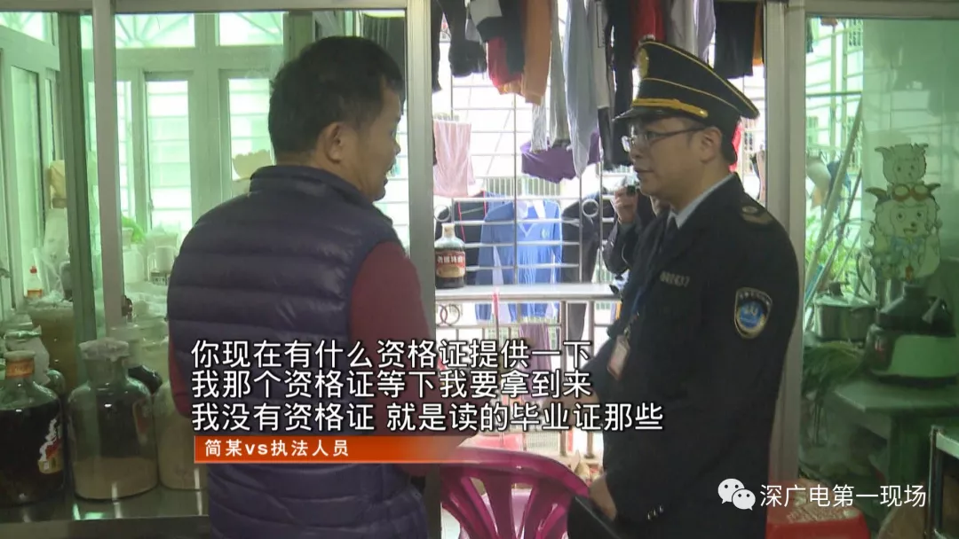簡(jiǎn)某嘴上說(shuō)他有醫(yī)學(xué)院畢業(yè)證,但最后出示的是20多年前取得的,《廣州市社會(huì)力量辦各類校班結(jié)業(yè)證書(shū)》及《中醫(yī)醫(yī)療函授學(xué)習(xí)證書(shū)》,衛(wèi)監(jiān)人員說(shuō)這都不算醫(yī)師執(zhí)業(yè)資格。對(duì)于沒(méi)有資格證的問(wèn)題,簡(jiǎn)某表示自己曾經(jīng)咨詢過(guò),原來(lái)可以到湛江進(jìn)行考試,但現(xiàn)在已經(jīng)不行了。