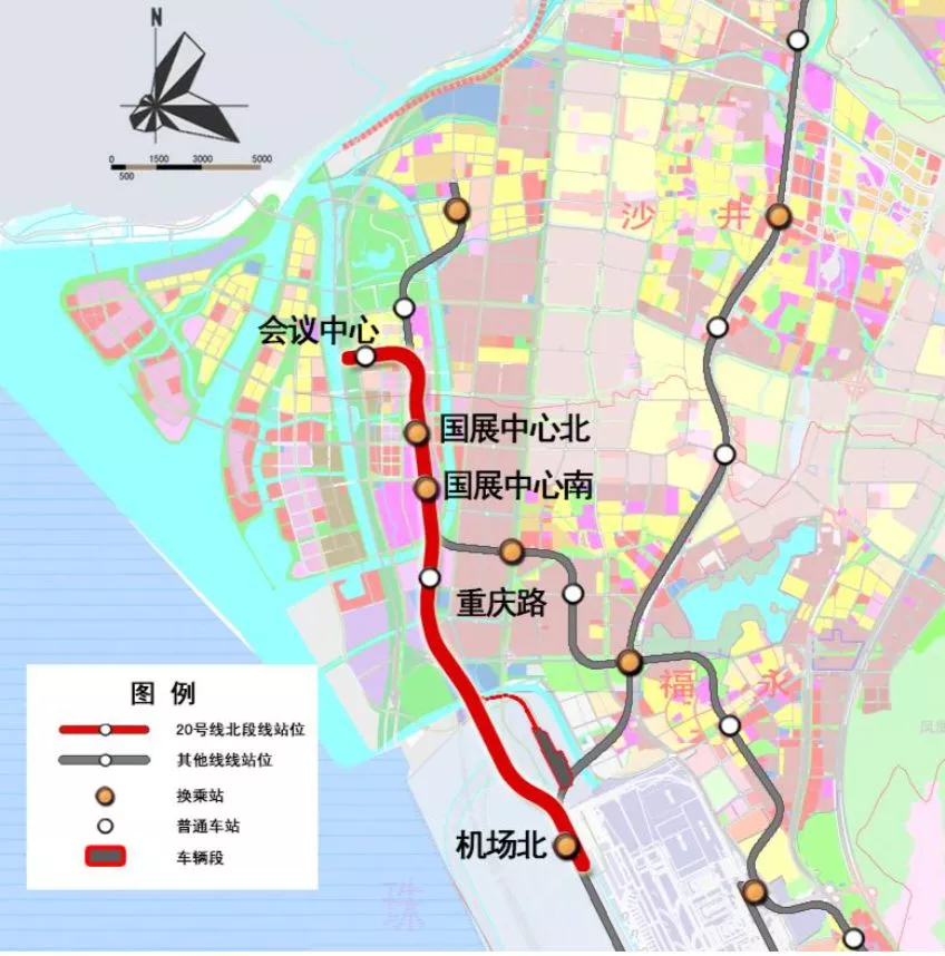 20號線北段起于寶安國際機(jī)場規(guī)劃T4航站樓,在規(guī)劃T4航站樓北側(cè),11號線東側(cè)設(shè)機(jī)場北站,與11號線、穗莞深城際線換乘。