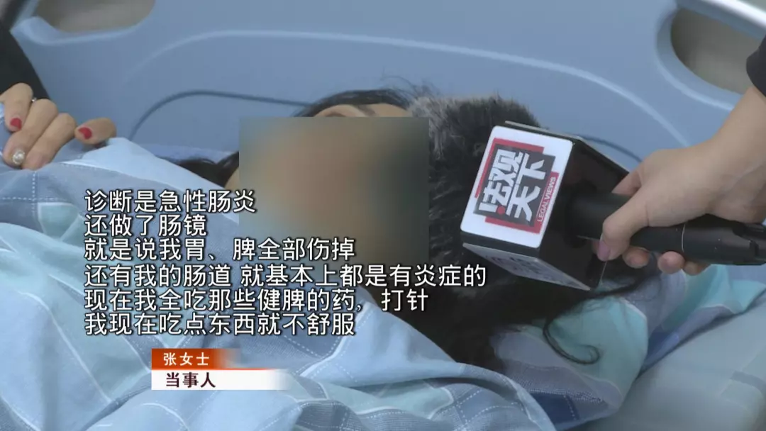 可是繼續(xù)服用酵素后,張女士發(fā)現(xiàn)身體情況還是不對勁,當她再找楊女士進行反映時,對方竟然把自己拉黑了。無奈之下,張女士找到了廣東天成健康管理有限公司的相關負責人,對方提供了一些中藥讓張女士服用。吃了幾副藥后,張女士的病情仍然未見好轉,一月底,張女士住進了醫(yī)院。一檢查,張女士發(fā)現(xiàn)自己一下瘦了二十斤,但是身體狀態(tài)大不如前,如今甚至要服用抗抑郁的藥物才能入睡。