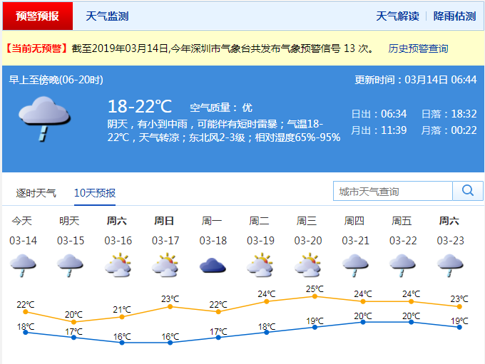 深圳新聞網(wǎng)2019年3月14日訊“露臉”沒幾天的太陽又要去“流浪”了。據(jù)深圳市氣象臺消息,受弱冷空氣影響,今日深圳陰天為主,有分散陣雨;氣溫19-21℃;。早晨天氣較涼,注意添衣保暖。